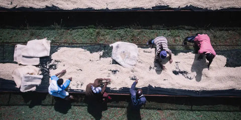 Die Kirschen werden von Hand gepflückt, sorgfältig sortiert, in Quellwasser fermentiert und gewaschen, bevor sie langsam auf afrikanischen Hochbetten trocknen.